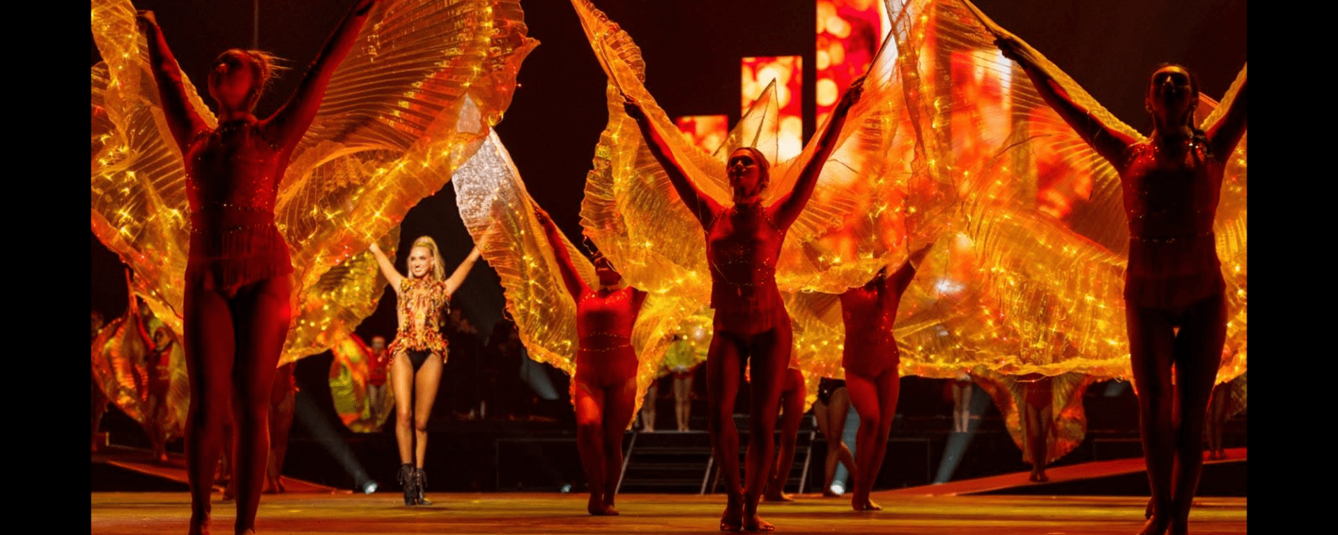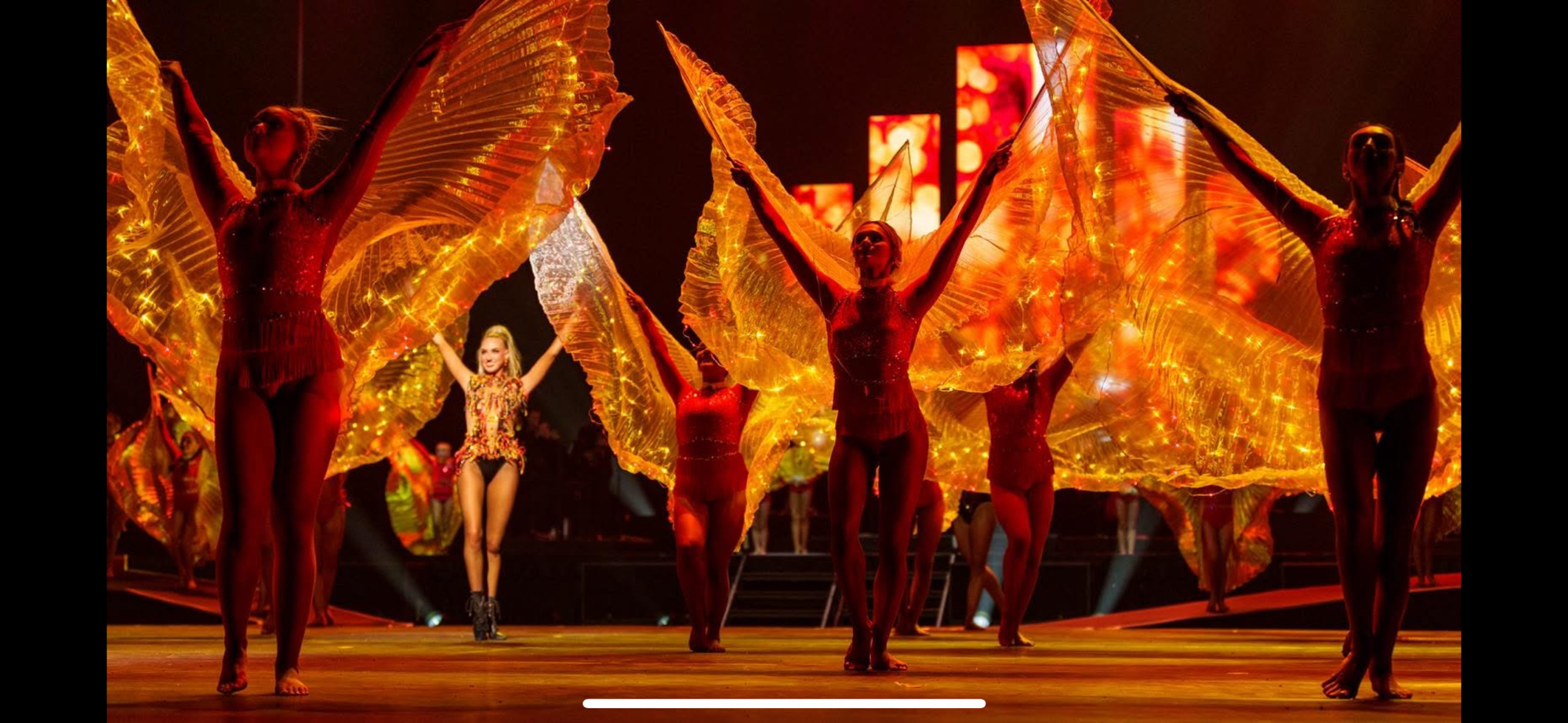 Showcasing the versatility and athleticism of the dancers, the show was opened with Earth, a mixture of contemporary dance and calisthenics rods, grounded and tribal-like in its choreography. Fire had a distinct jazz flavour, bringing an upbeat energy with recognisable classics such as Fever and Le Jazz Hot, which was just the beginning of a number of ‘Calisthenics classics’ used throughout the show. A particularly long scene, Fire finished with gossamer wings lit up in fiery colours creating a mass effect that could be appreciated from every angle, sadly lasting only a moment.